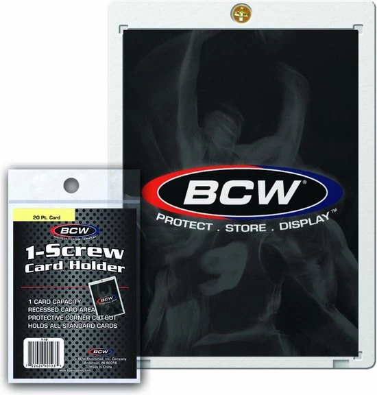 The BCW 1 Screw Card Holder is made of high impact, crystal clear polystyrene with all of the features and benefits of a ¼ Inch screwdown in a compact design.