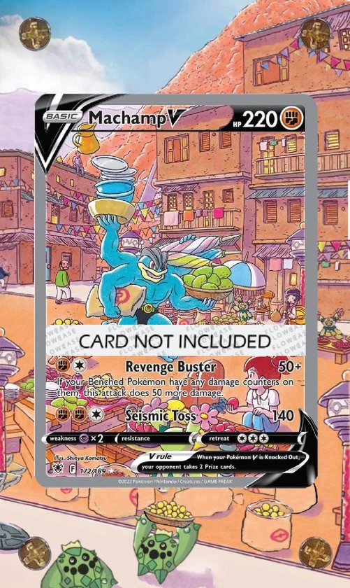 FLOWCASE Custom Pok?mon TCG beschermhoesje voor Machamp V Alt art (#172) Bescherm jouw mooie, zeldzame en waardevolle verzamelkaarten in een net zo’n mooie custom art work case. Het hoesje heeft een frame waar de kaart (eventueel met sleeve) perfect in past. Het hoesje wordt met de meegeleverde schroeven aan elkaar bevestigd. De kaart wordt hierdoor perfect beschermd en houdt zijn waarde.