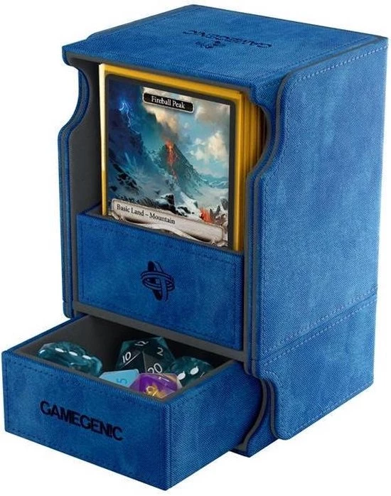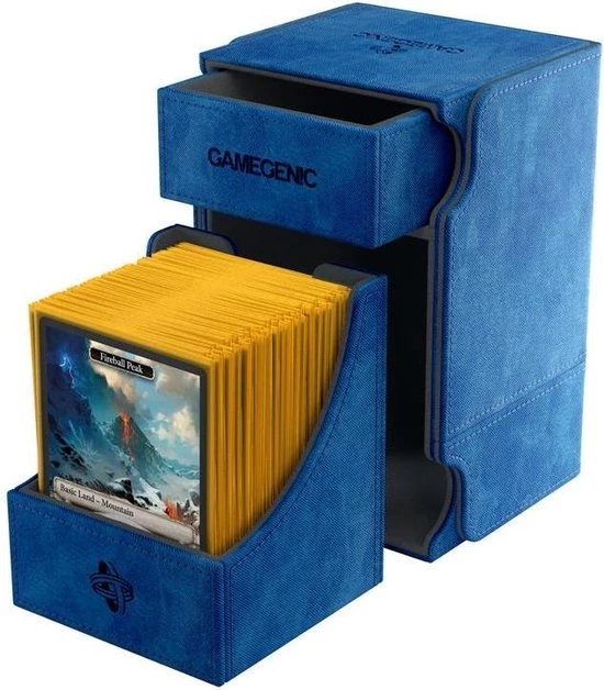 De enige deckbox met een eigen kaartdispenser!Deze blauwe, aanpasbare Watchtower combineert een deckbox, een lade voor accessoires en een kaartvak in ??n elegante box. Het kaartvak is geschikt voor maximaal 100 kaarten met dubbele sleeves en is beschermd dankzij een zachte binnenvoering van microvezels.