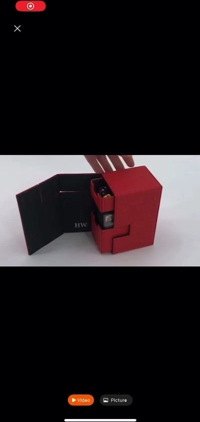 Luxe kaartenbox met magneetsluiting en uitneembare kaarten- en accessoirevakken voor bescherming en archivering.