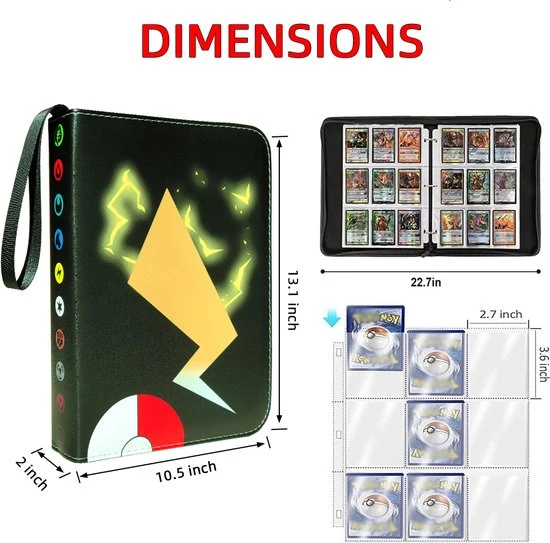 Met de Verzamelmap speciaal ontworpen voor Pok?mon kaarten bewaar je al je favoriete speelkaarten netjes en veilig. De Verzamelmap biedt je Pok?mon kaarten bescherming tegen vuil, stof, krasjes en vocht. Bewaar tot liefst 900(!) Pok?mon kaarten in 50 beschermende insteekbladen en sluit de map veilig af met een sterke ritssluiting.