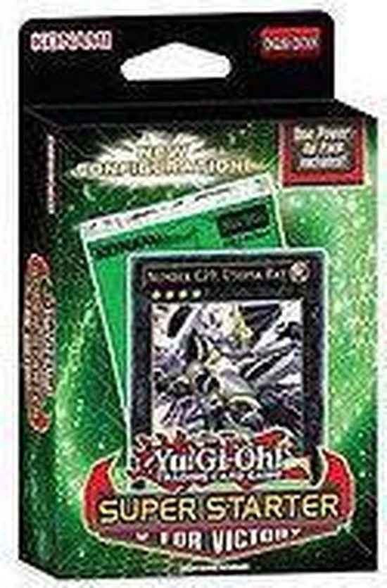 Super Starter – V for Victory is een Yu-Gi-Oh! Starter Deck gebaseerd op het deck waarmee in de Zexal TV serie gespeeld wordt door Yuma! Inhoud van een Yu-Gi-Oh! Super Starter Deck: 1 deck van 42 kaarten (1 Super Rare, 1 Rare en 40 Commons), 1 Power Up Pack met 10 kaarten (2 Ultra Rare, 2 Super Rare en 6 Commons), 1 Beginners Guide en 1 speelmat. Met maar liefst 12 gloednieuwe kaarten die niet eerder in Europa verschenen zijn (5 in het deck en 7 van het Power Pack). De kaarten uit het Power Pack zijn willekeurig en behoren tot een set van 15 kaarten.