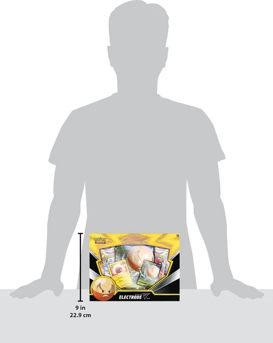 In deze doos vind je speelbare en extra grote versies van Hisuian Electrode V, plus een speelbare bonuskaart met Electrode uit de Kanto Regio. Je krijgt ook een handvol Pokémon TCG-boosterpakketten om je decks te verbeteren en te vullen uit je collectie.