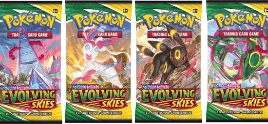 De Pok?mon Sword & Shield Evolving Skies Sleeved Booster bevat 10 willekeurige Pok?mon kaarten.