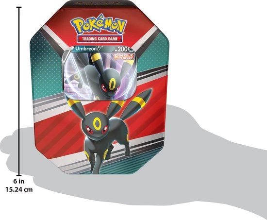 Til jouw spel naar een hoger level met de Pok?mon TCG V Heroes Tin van de krachte Evoltuions of Eevee als Pok?mon! Ga jij voor de relaxente stralende kracht van Espeon V, de krachtige blik van Umbreon V of de gracieuze geschenken van Sylveon V? De tins bevatten niet allen battle-ready Pok?mon V, maar bevatten ook waardevolle Pok?mon TCG booster packs.