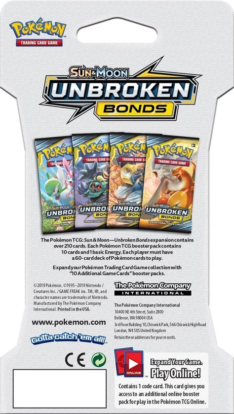 Bereid je voor want Sun & Moon Unbroken Bonds bevat in totaal meer dan 210 kaarten. Hierin zitten 7 gloednieuwe Tag Team Pok?mon- GX kaarten, 7 andere Pok?mon-GX kaarten, meer dan 25 trainerkaarten en een speciale Energiekaart.