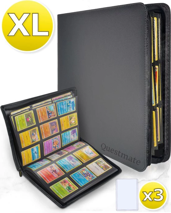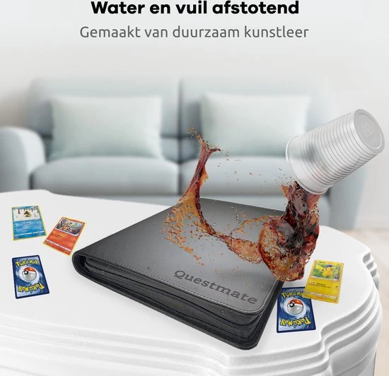 De Questmate® Verzamel map bestaat uit slechts de beste kwaliteit kunstleer zodat jij maar liefst 360 kaarten kunt beschermen tegen vloeistoffen, vuil en verkleuringen.