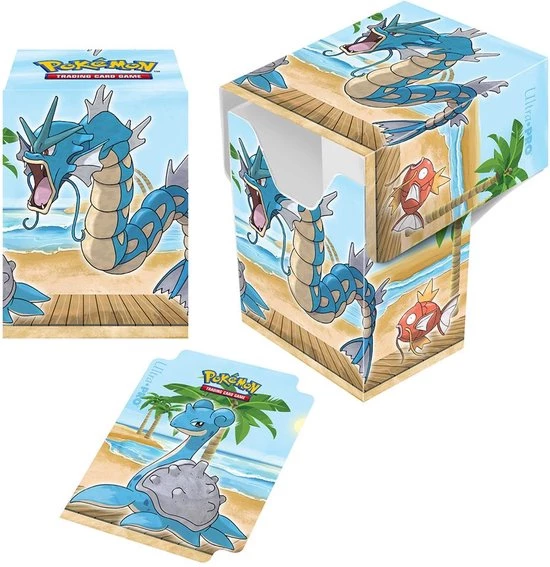 Surfs up with Pok?mon Seaside Series Accessories! Ultra PRO?s Full View Deck Box for Pok?mon features vibrant, full-color artwork and includes one matching deck divider. Made with archival-safe, non-PVC, rigid polypropylene materials, these deck boxes can store up to 75 double-sleeved cards comfortably. The self-locking lid keeps your cards securely stored when not in use, while also offering easy access. Sized for standard size trading cards.
