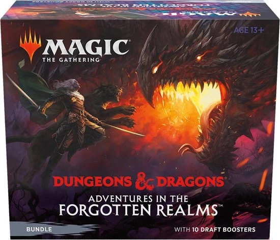 Bundles are ideal if you want some exciting bonuses to go with your booster packs. Each Adventures in the Forgotten Realms Bundle contains oversized cards for all three Adventures in the Forgotten Realms dungeons. In each Magic The Gathering: Adventures in the Forgotten Realms Bundle, you’ll find: